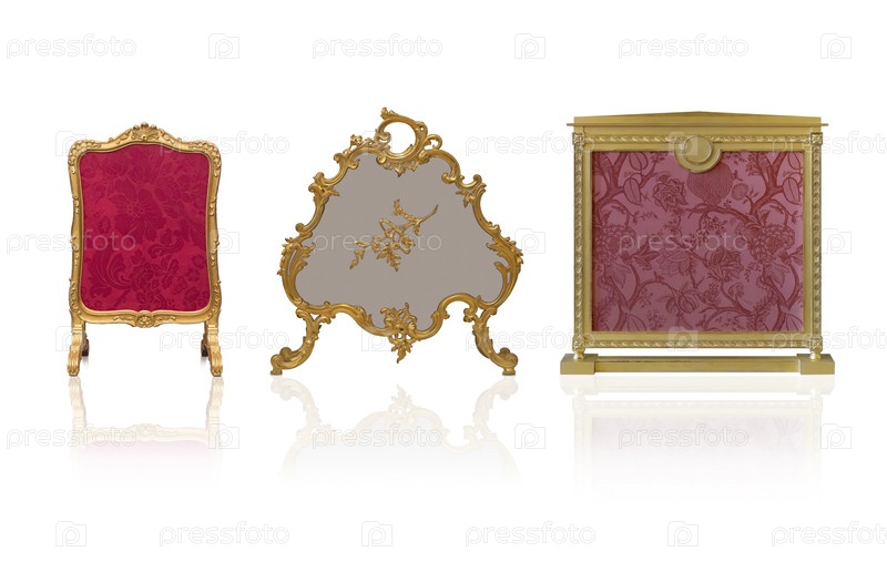 Набор золотых экранов огня изолирован на белом фоне