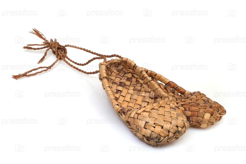 Древняя национальная обувь, сотканная из коры дерева и конопли, изолированная на белом фоне