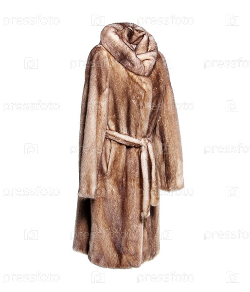 Изысканная женская шуба из меха норки, изолированная на белом фоне