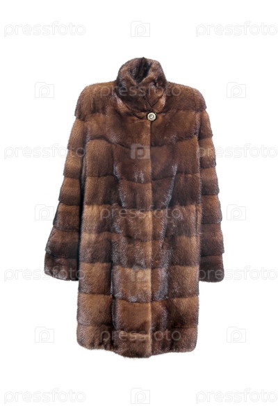 Изысканная женская шуба из меха норки, изолированная на белом фоне