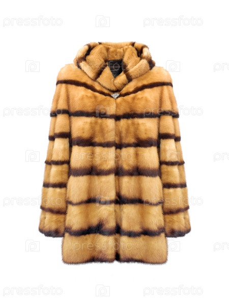 Орнатная женская шуба из норкового меха изолирована на белом фоне