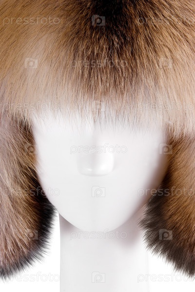 Манекен голова с меховой шляпой изолирована на белом фоне