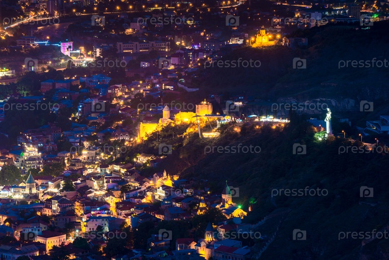 Вид на Старый город Тбилиси, Грузия после захода солнца