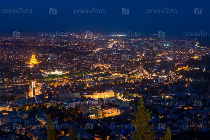 Вид на Старый город Тбилиси, Грузия после захода солнца