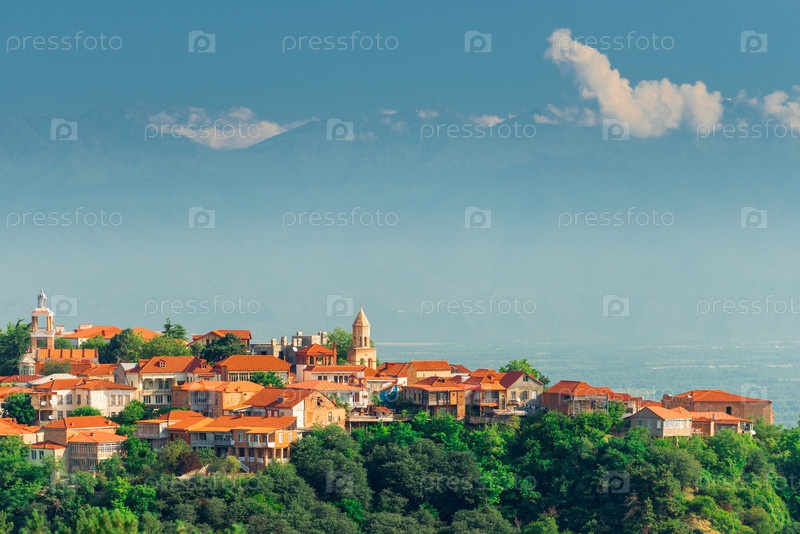 Вид на Сигнаги и долину Алазани, Грузия. Город любви Сигнахи в Грузии, регион Кахетия