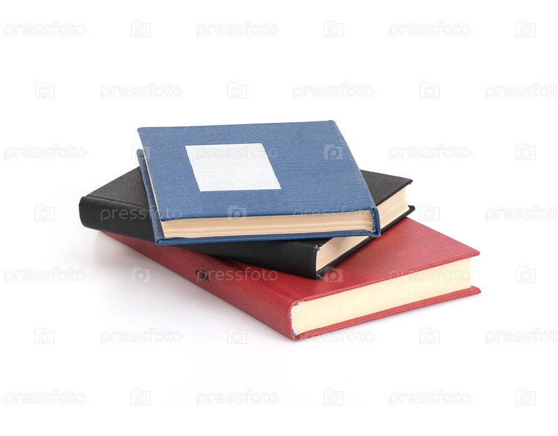 Пачки красных, черных и синих книг, изолированных на белом фоне