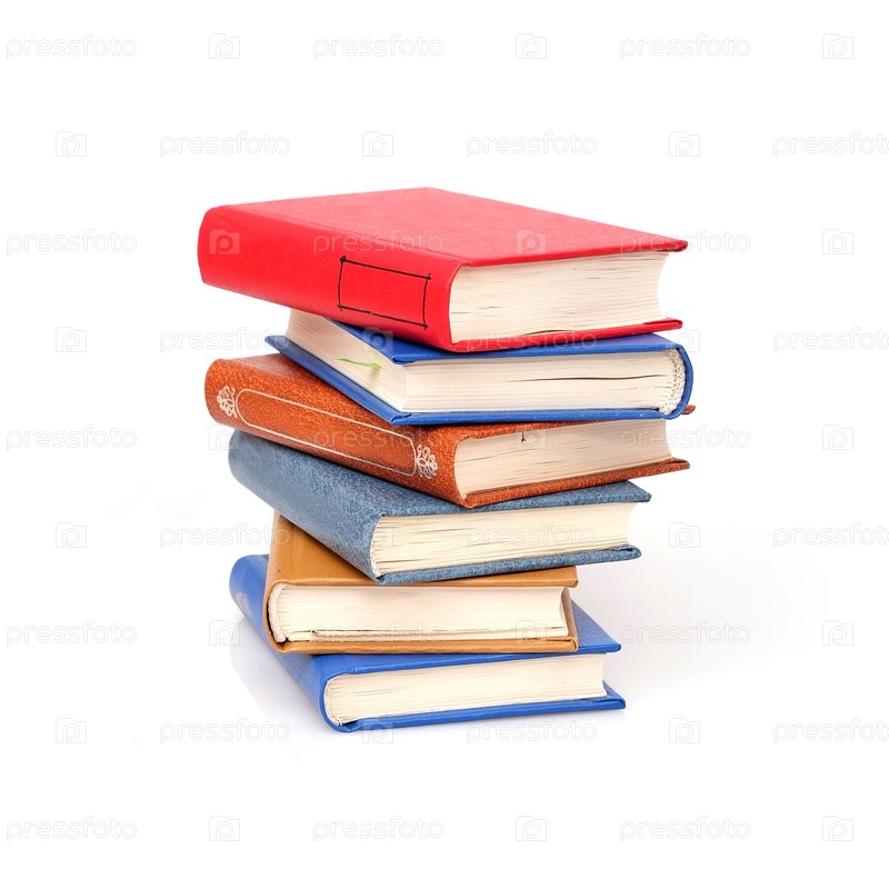 Стопка книг в разноцветных обложках, изолированная на белом фоне