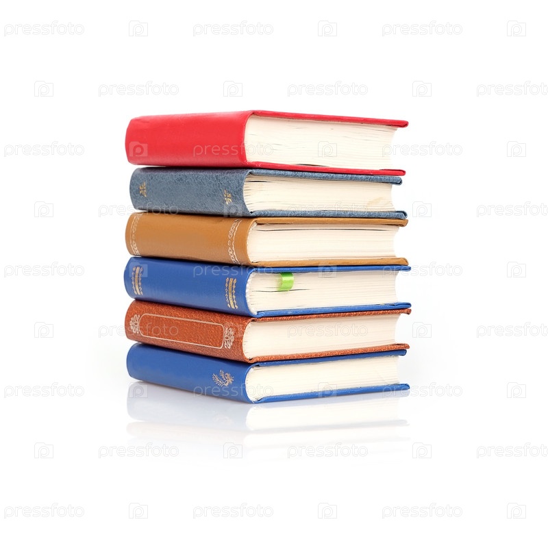 Стопка книг в разноцветных обложках, изолированная на белом фоне