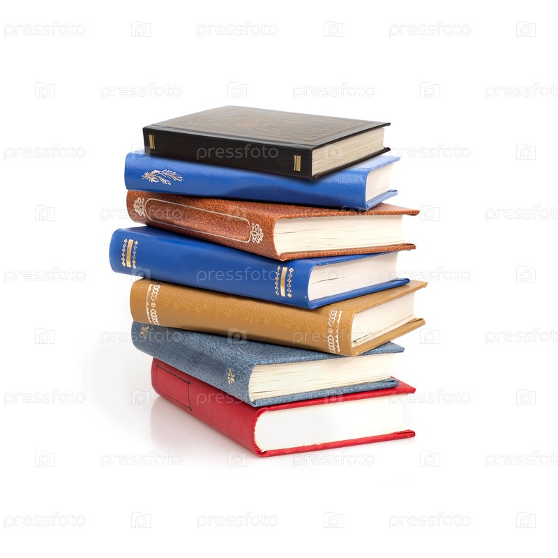 Стек книг в цветных обложках с белыми листами, изолированными на белом фоне