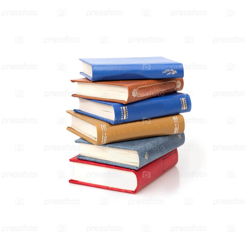 Стек книг в цветных обложках с белыми листами, изолированными на белом фоне