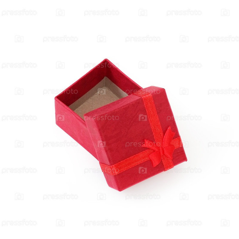 Красная коробка для подарка изолирована на белом фоне