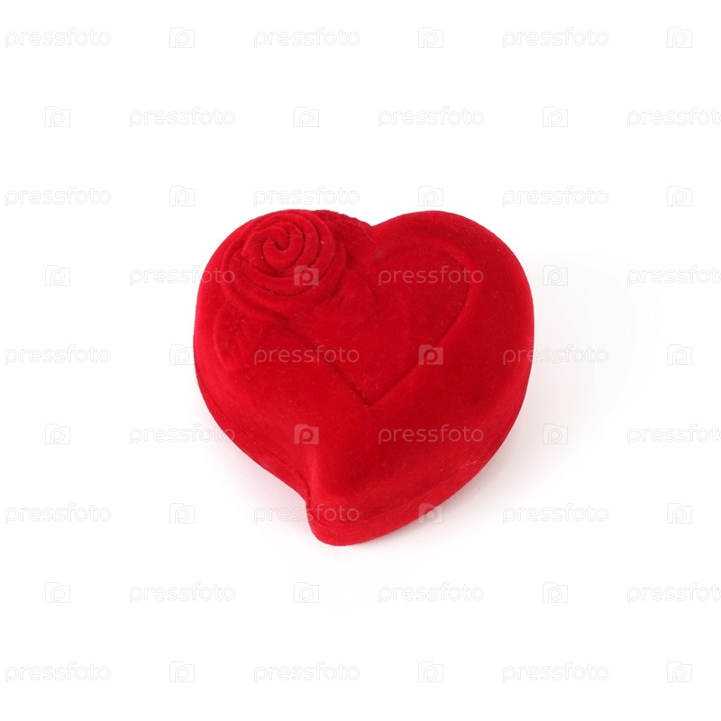 Красная бархатная коробка для сердца для подарка изолирована на белом фоне