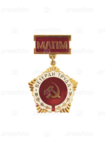 Мемориальный знак Советского Союза. Русская надпись на английском языке означает «Ветеран труда Министерства легкой промышленности»