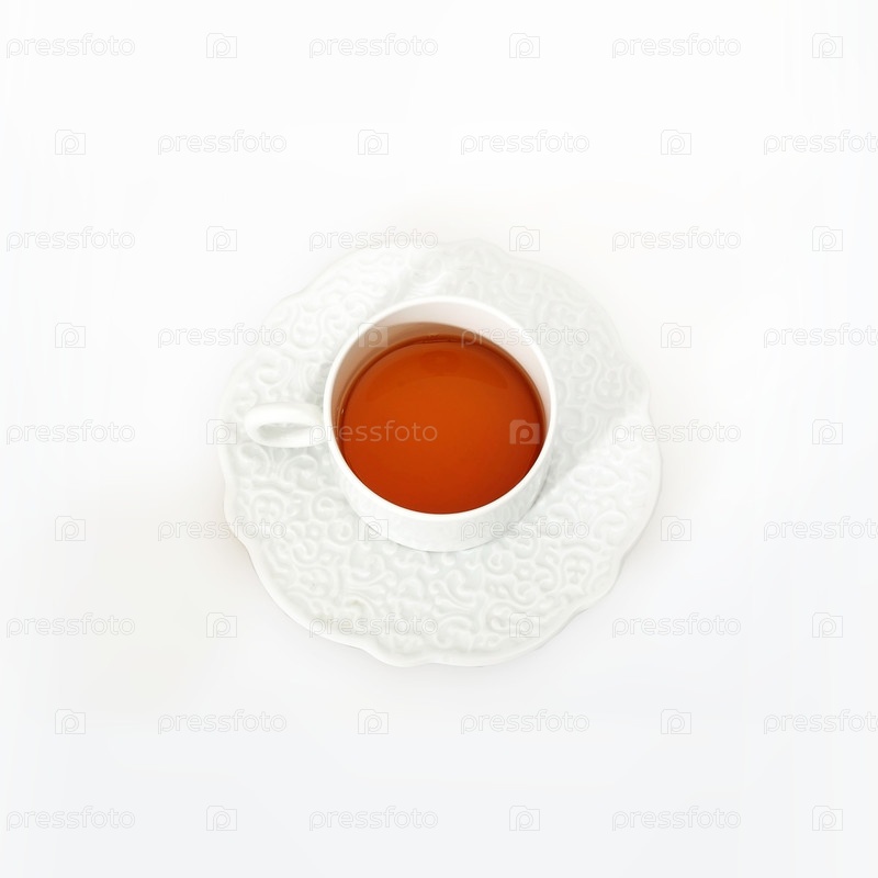 Фарфоровая чашка с чаем изолирована на белом фоне
