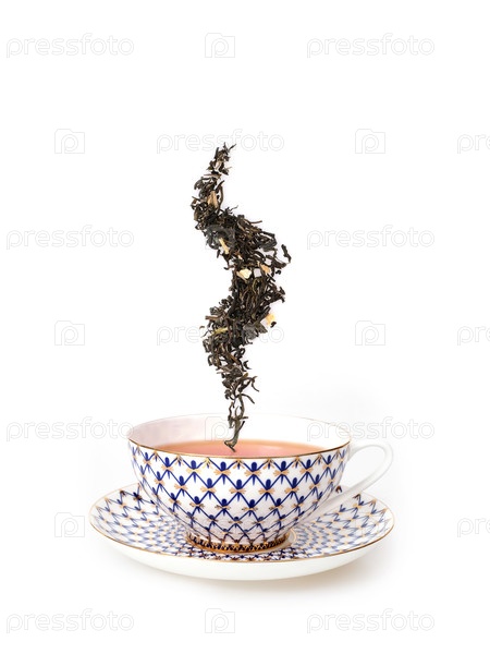 Фарфоровая чашка с чаем на белом фоне. Элемент дизайна с обрезкой пути