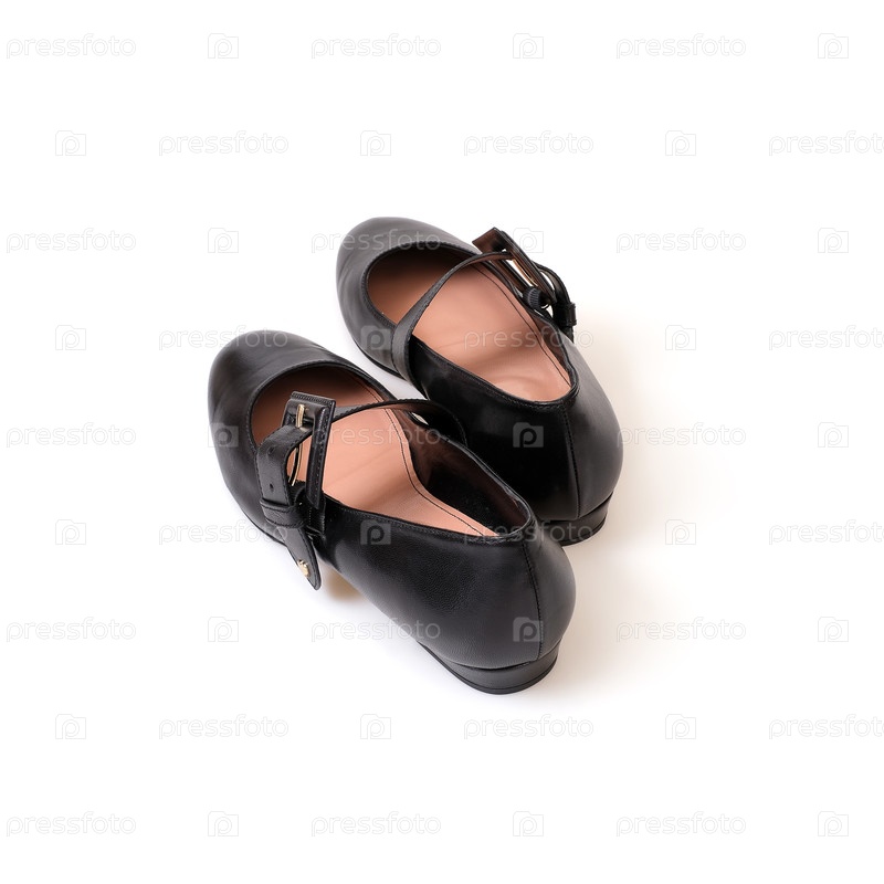 Черная кожа красивые низко каблуковые черные туфли изолированы на белом фоне