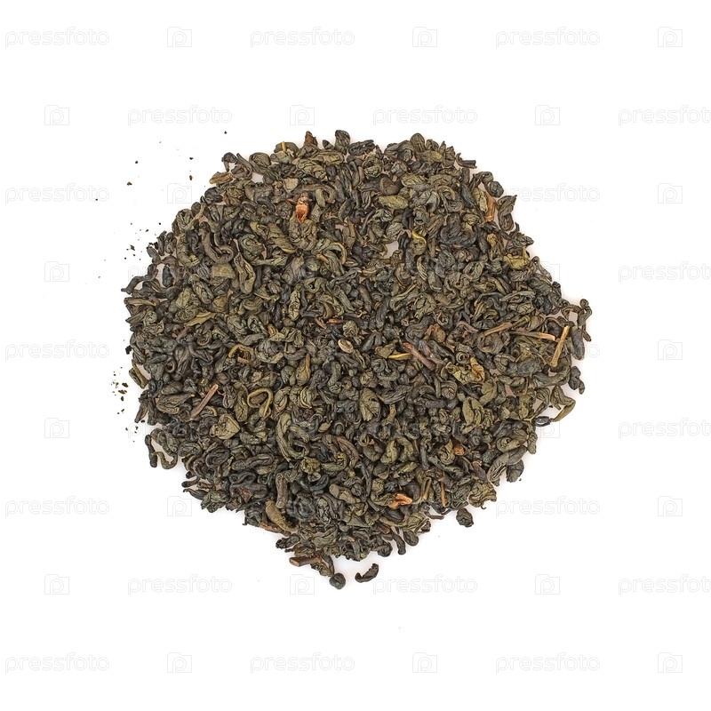 Большой листовой зеленый чай изолирован на белом фоне