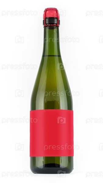 Бутылка вина на белом фоне с пустой этикеткой