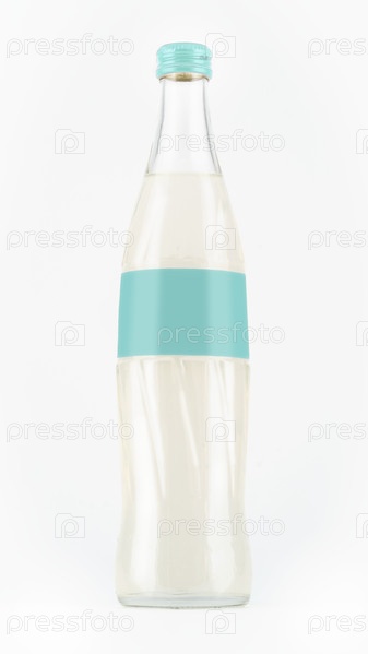 Разложите бутылки для безалкогольных напитков на белом фоне с пустой этикеткой