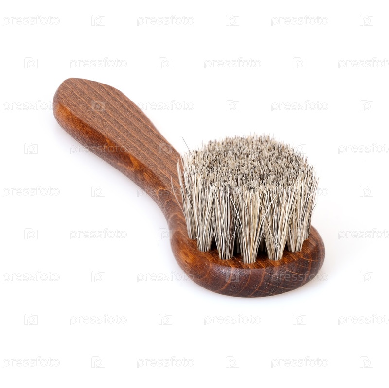 Бристл деревянная щетка для чистки одежды и обуви изолирована на белом фоне