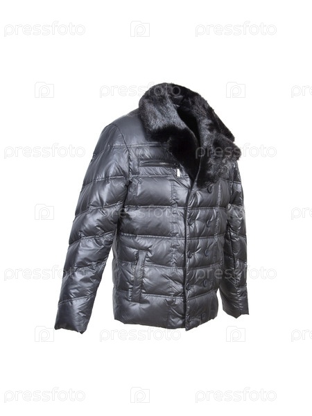 Черный пуховик с меховым воротником для спорта и отдыха изолирован на белом фоне
