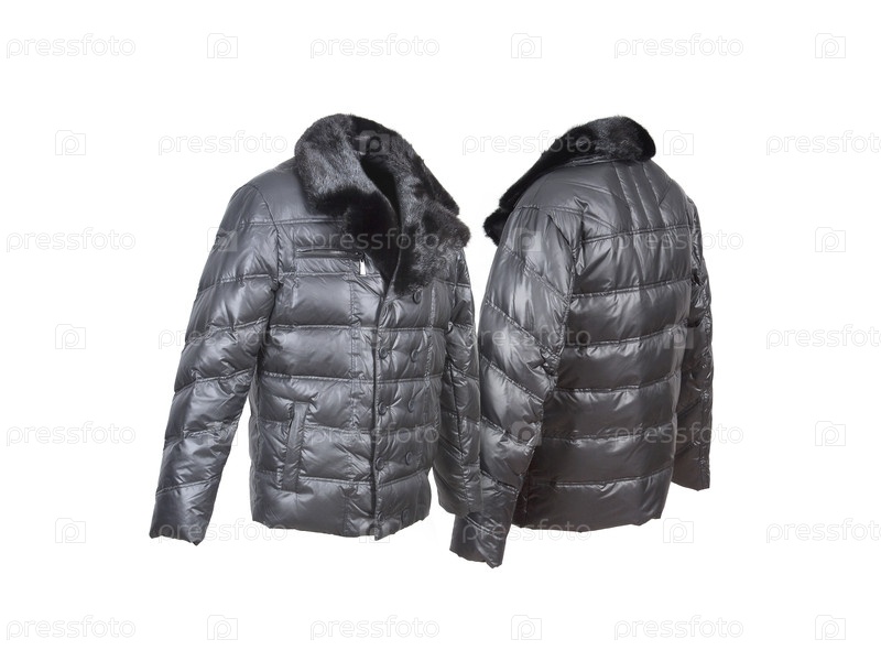 Черный пуховик с меховым воротником для спорта и отдыха изолирован на белом фоне