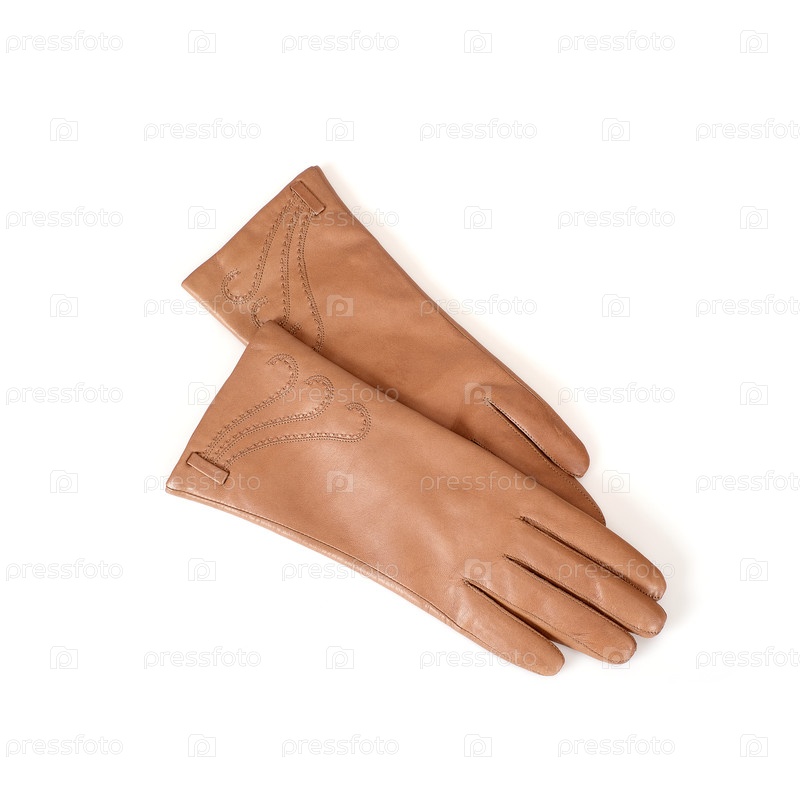 Пара бежевых женских перчаток из натуральной кожи, изолированных на белом фоне