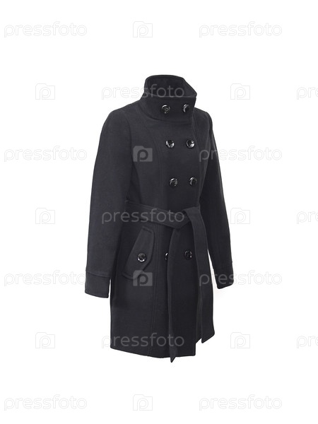 Женское текстильное черное пальто изолировано на белом фоне
