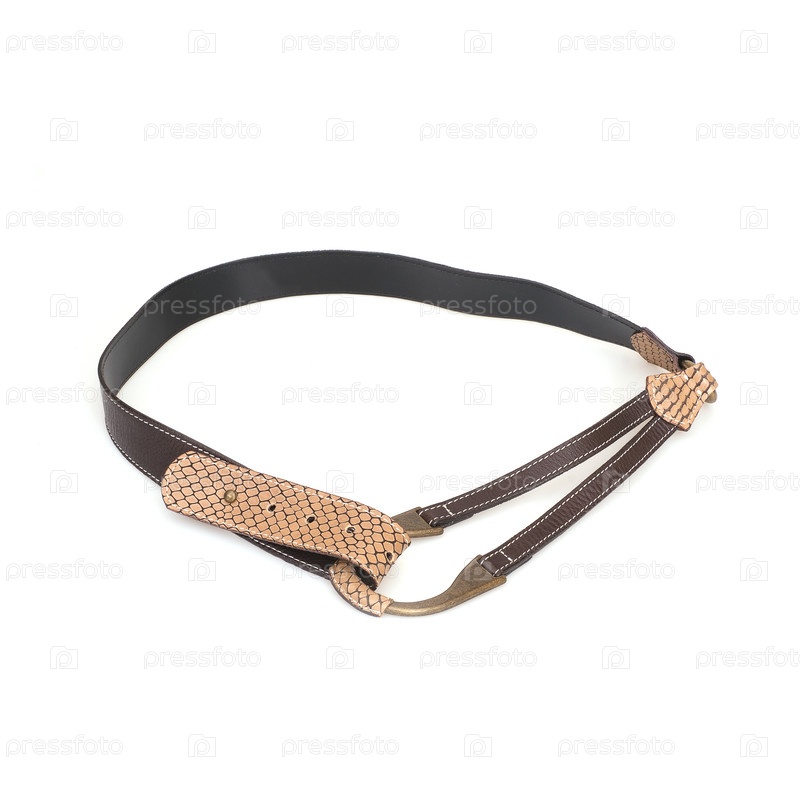 Кожаный пояс с декором рептилий изолирован на белом фоне