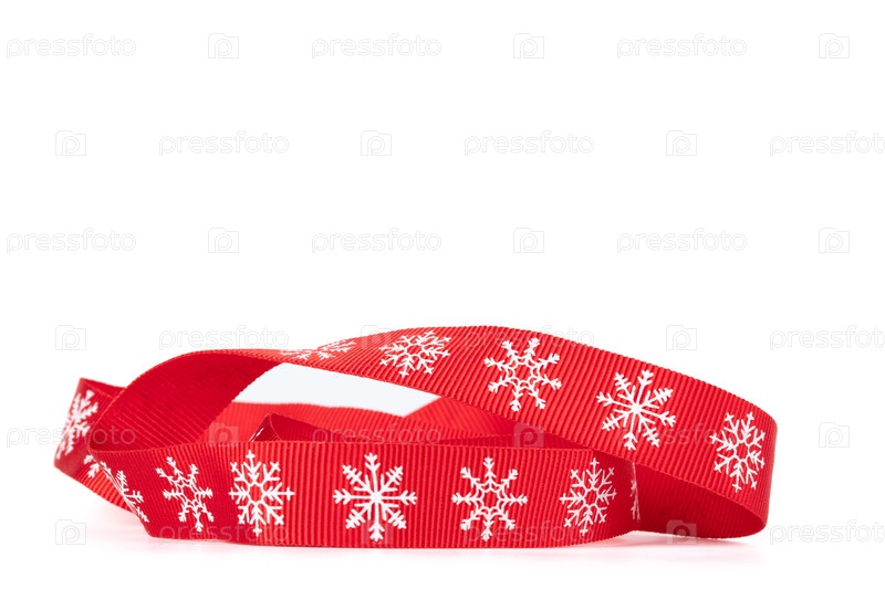 Рождественская красная ленточка с белыми снежинками изолирована