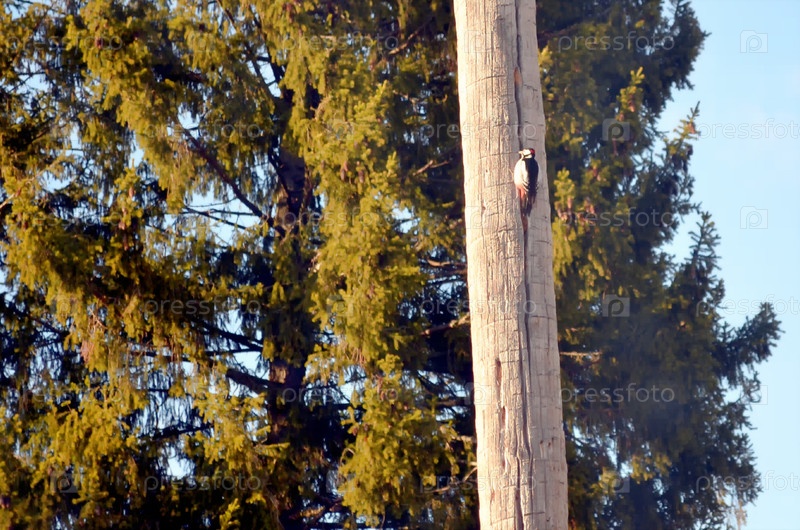 Дятел сидит на столбе