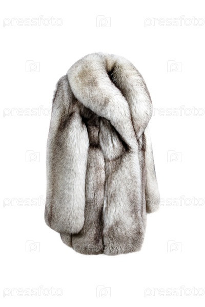 Изысканная женская шуба из меха песца, изолированная на белом фоне