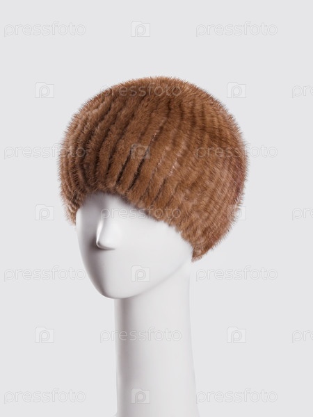 Женская меховая шляпа на пластиковой манекеновой голове изолирована на белом фоне