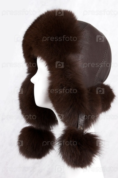 Манекеновая голова с меховой шляпой изолирована на сером фоне