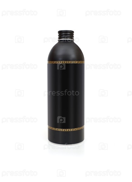 Черная косметическая бутылка на белом фоне