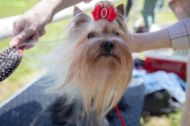 Йоркширский терьер с красным бантиком
