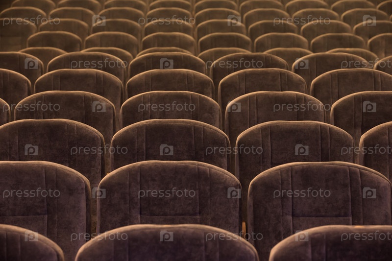 Коричневые мягкие удобные кресла пусты в зрительном зале или концертном зале