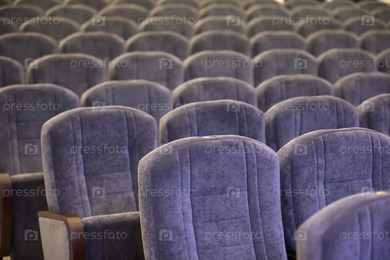 Мягкие пустые стулья в зрительном зале. Ряд стульев