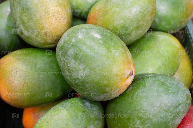 Манго сверху. Много экзотических фруктов манго