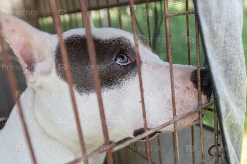 Лицо бойцовой породы собаки в вольере