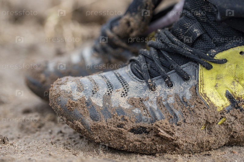 Грязные туфли. Кроссовки размазали грязной почвой