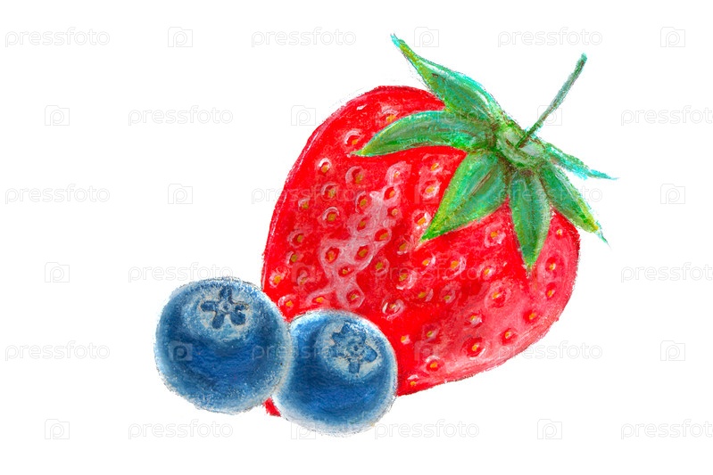 Рисунок большой клубники и черники на белом фоне