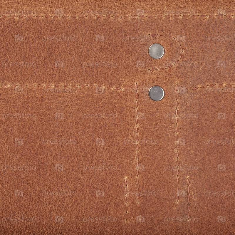 Текстура натуральной коричневой кожи со швом и металлическими кнопками