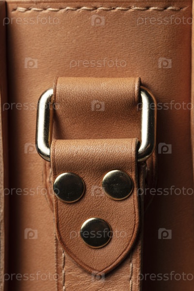 Часть сумки из коричневой натуральной кожи с металлическим креплением для ручки