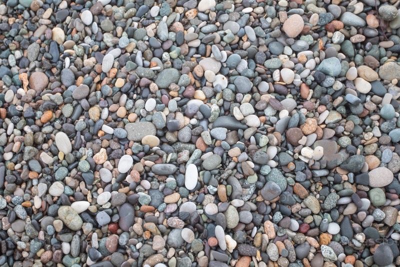 Текстура разнообразной морской гальки. Каменный пляж