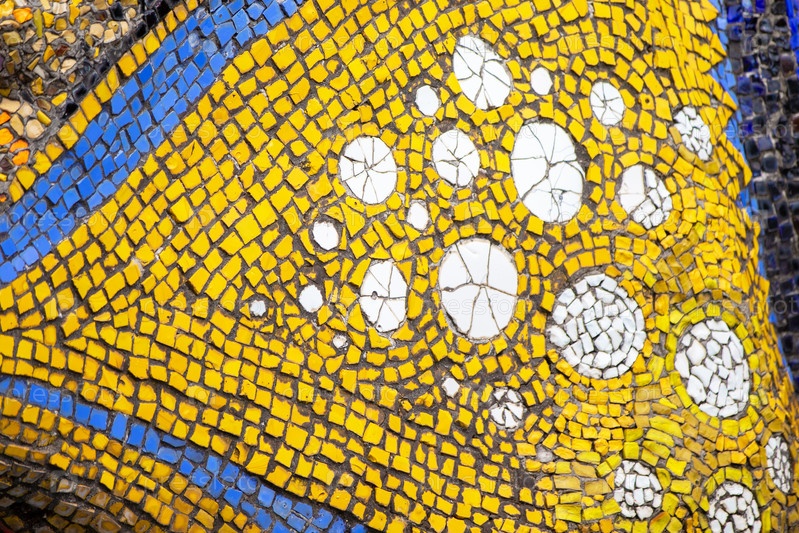 Мозаичная панель из разноцветных кусочков керамики. Справочная вставка, мозаика