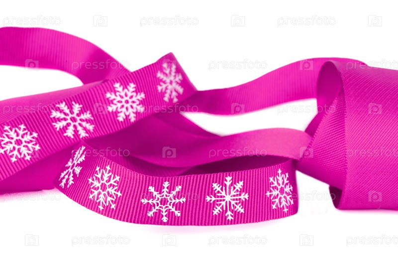 Рождественская ленточка розового цвета с белыми снежинками с копирайтом