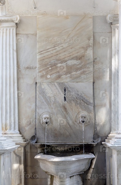 Источник в виде львиной головы в горах (Южный Пелион, Греция)