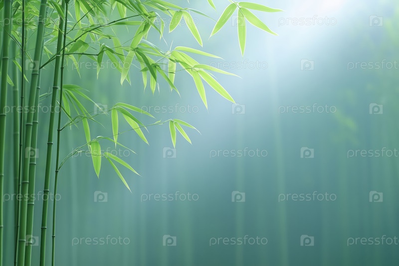 Бамбуковый лес с утренними лучами солнца, естественный зеленый фон