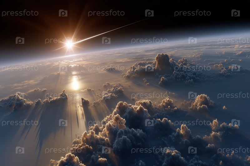 Восход солнца над облаками. Вид с воздуха